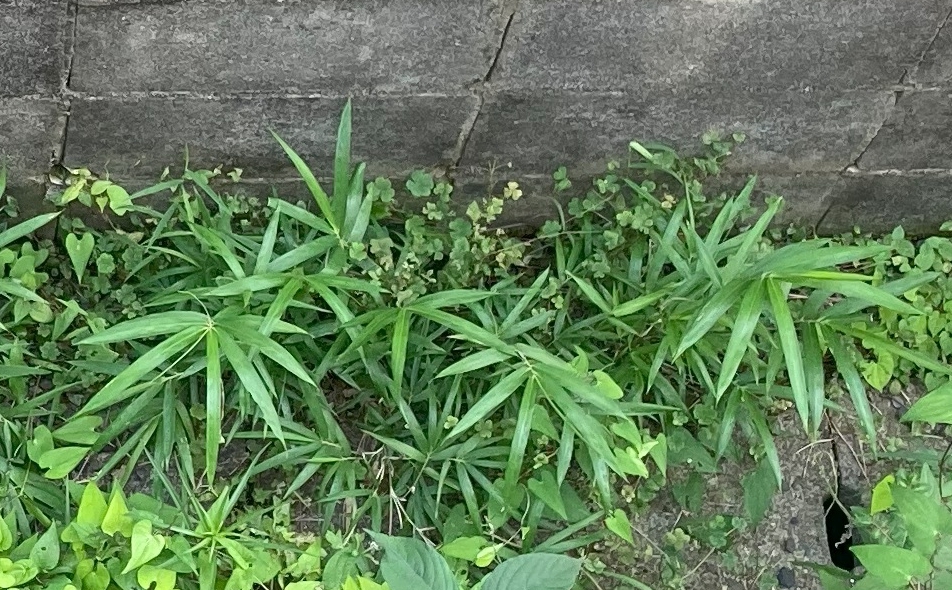 アズマネザサは荒れ地などでよく見かける笹の一種。放置すると地中に張り巡らせた根茎を介して、生育領域が拡大する。引き抜こうとしてもびくともせず、仕方なくハサミで根元の茎を切るしかないが根は残る。また、来年も間違いなく現れるだろう。