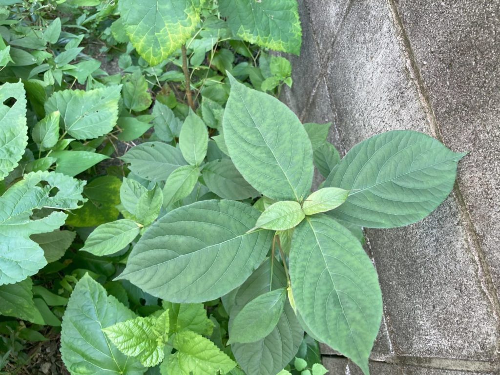 これもヨウシュヤマゴボウの下に生えていた。花や果実があると、クワクサの判別は容易だが、若い株の葉からの判断なので心もとない。クワクサは所沢近辺ではよく見かける植物だが、内部の圧力により果実を弾き飛ばす性質があるので、何故ここに根付いたかは不明だ。