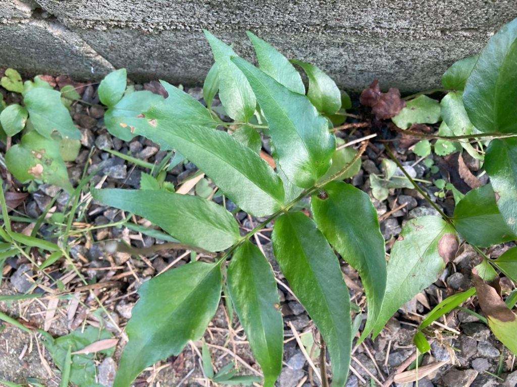 ヨウシュヤマゴボウの下に生えていた。まだ若い個体なので判然としないが、ヤブソテツの仲間だと思う。日陰で湿った環境が適していたのかもしれない。