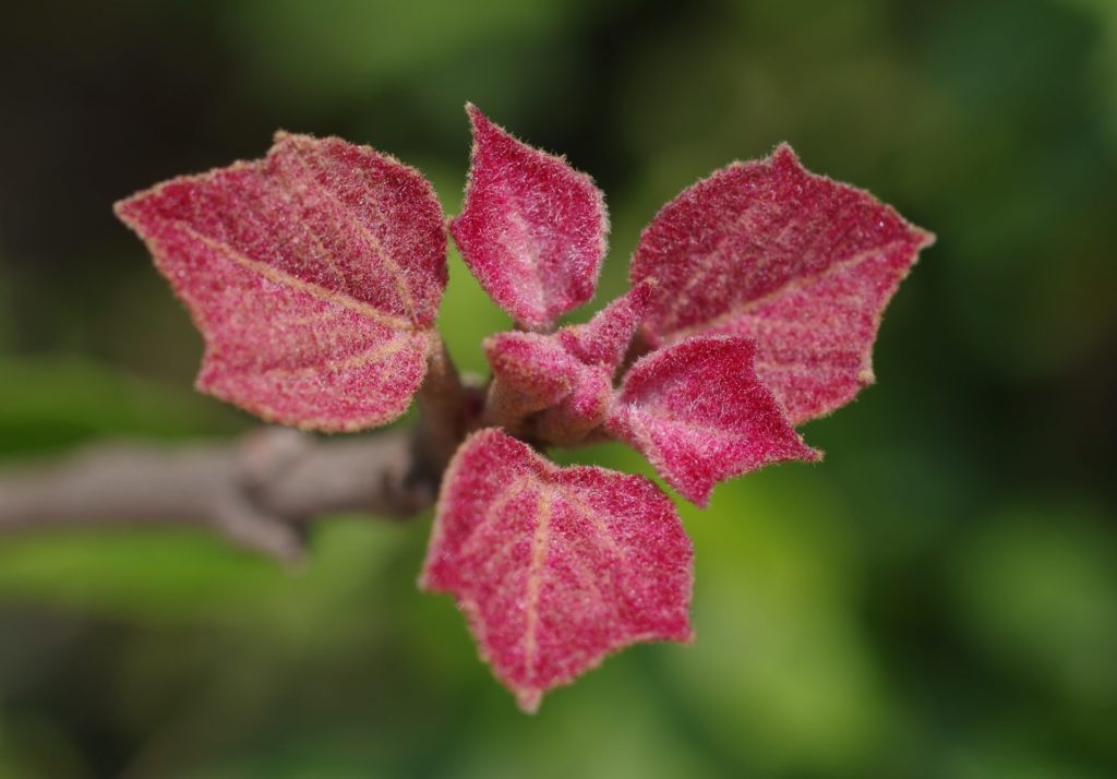 アカメガシワ - 際立つ鮮紅色の芽吹き