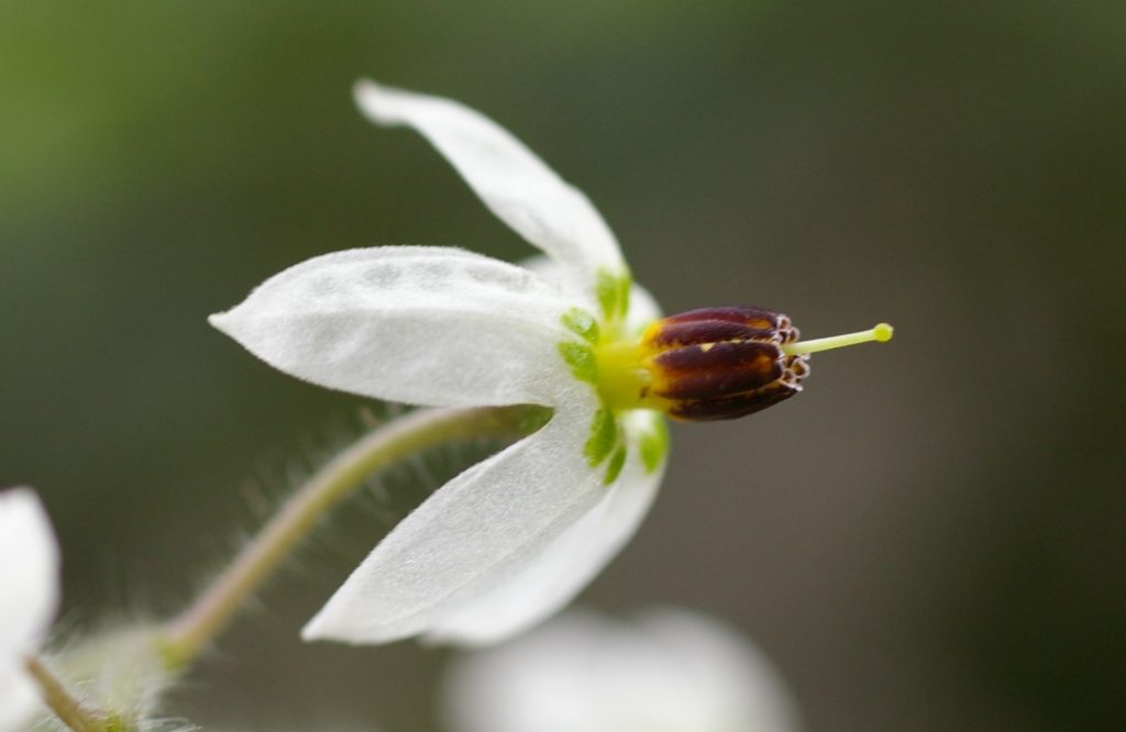 ヒヨドリジョウゴの花の構造は、少し変わっていて、雄蕊の葯の花粉の出口方向と、雌蕊の方向が同じであることを述べた。この理由について解析を行った研究報告がある。東京大学の研究グループによる"日本産ナス属植物における花形態変異と系統関係"だ(詳細はここをクリック)。先ず、ヒヨドリジョウゴは、自家和合性(自家受粉可能)なのか、それとも自家不和合性なのかとの課題にたいして、日本在来ナス属植物4種(ヒヨドリジョウゴ、ヤマホロシ、マルバノホロシ、オオマルバノホロシ)を用いて、自生個体と博物館標本をゲノム解析法を用いて、単一の進化的系統からなりことを確かめ、更にヒヨドリジョウゴで袋がけ実験と花粉管伸長観察を行なったところ、本種は自家和合性であることが明らかになった。また、ヒヨドリジョウゴは、他の3種と比較すると、葯から柱頭までの距離が長く、自家和合性であっても出来るだけ自家受粉を防ぎ、他の花の花粉を受け入れるように、花の形が進化した可能性が示唆された。