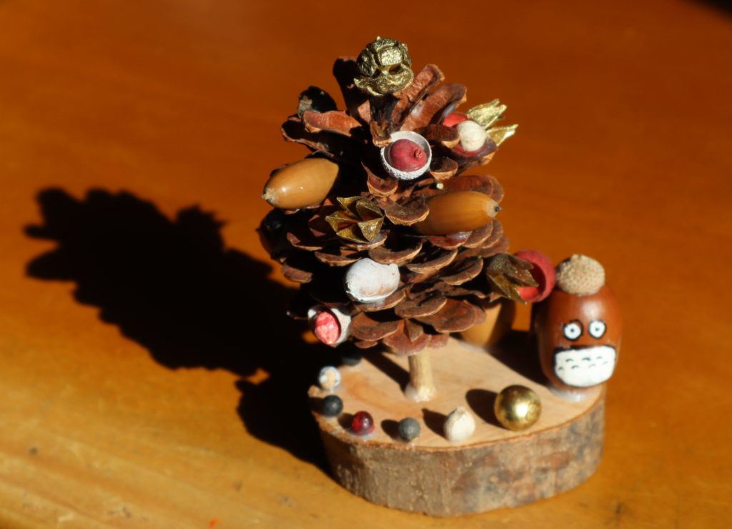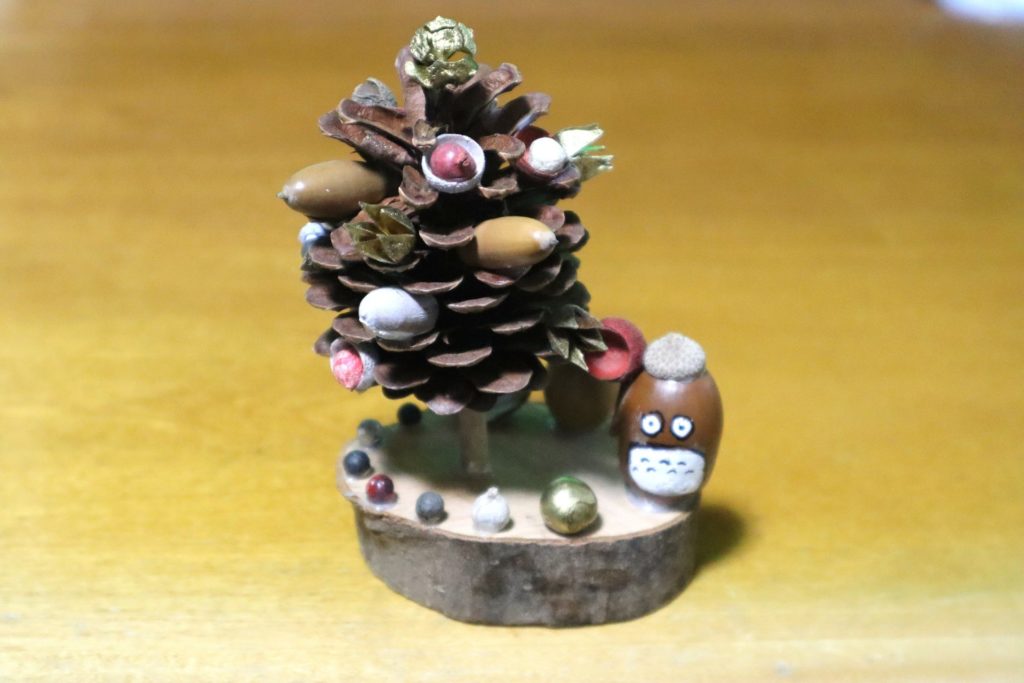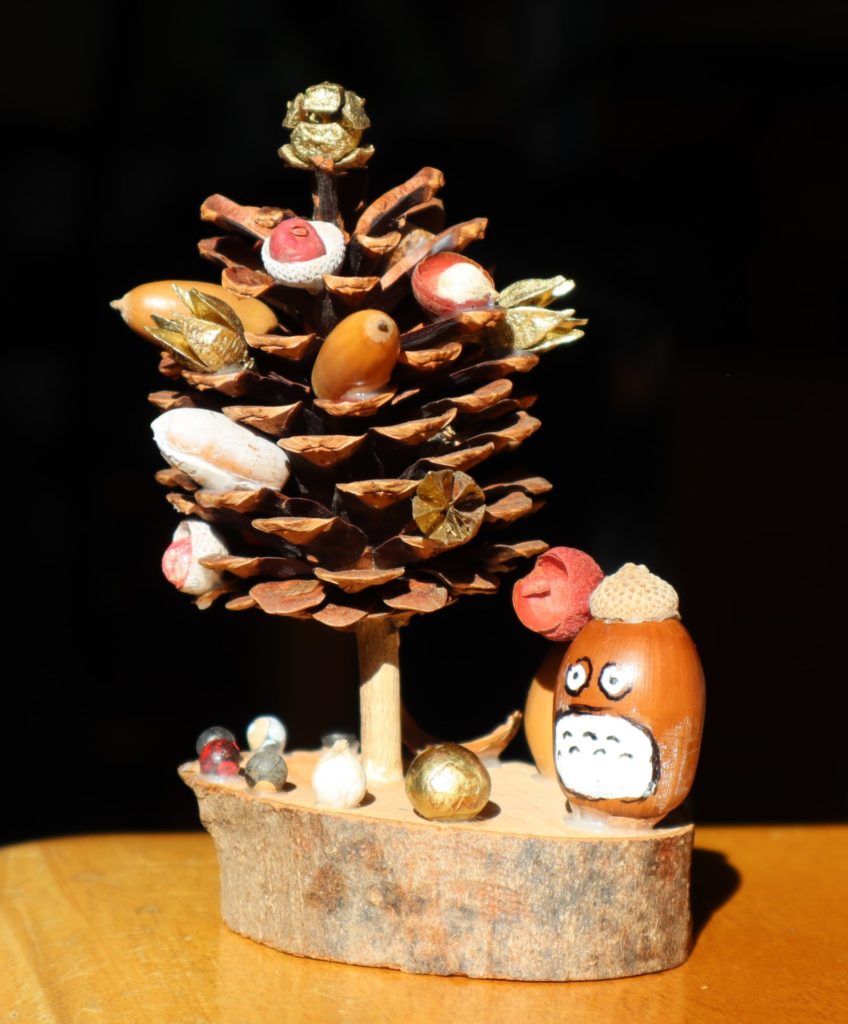 首都圏に残る緑の浮島と呼ばれる狭山丘陵のトトロの森を守るボランティア活動をしている。年齢も職業も異なる人達が、ある特定の目的のために活動するので、気心が知れた存在になれる。先日、あるトラスト地で草刈りや伐採を行った際に、ある参加者の方から"松ぼっくりツリーの作り方"キットをいただいた。