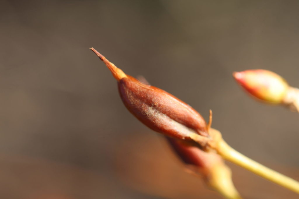 秋には、茶色くなった果実と、赤茶色い芽鱗に覆われた冬芽がつく (‎2001‎年‎11‎月‎18‎日 所沢市)