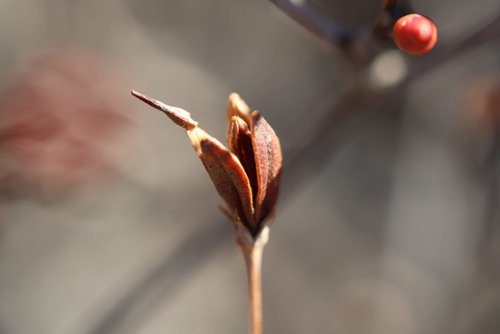 赤茶色い芽鱗に覆われた冬芽 (‎ 2025年12‎月‎28‎日 所沢市)