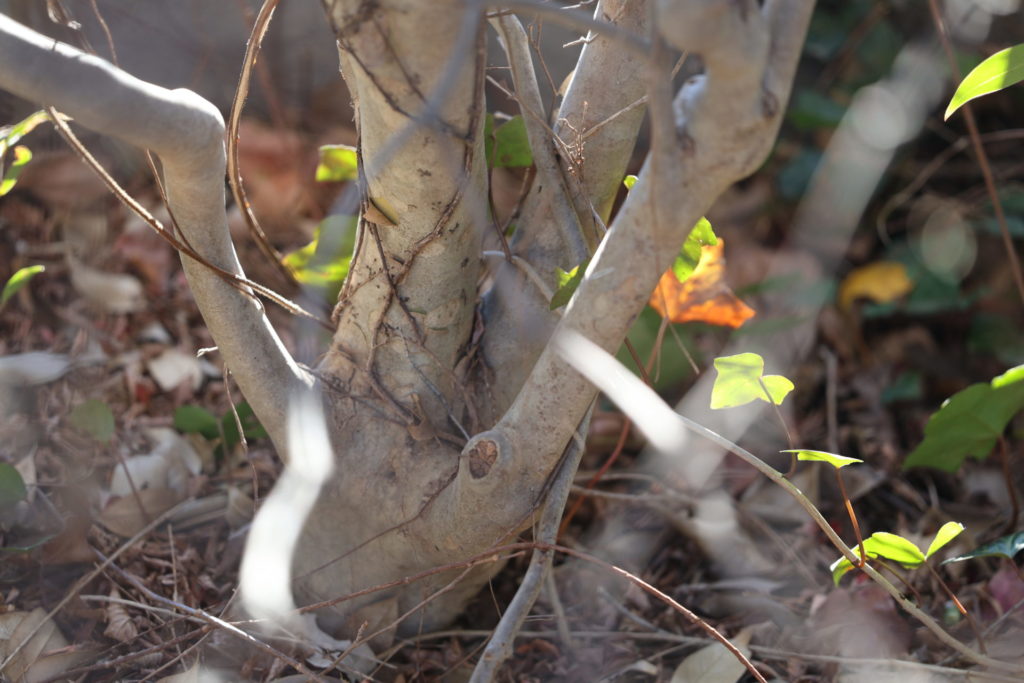 幹は地表で株立し、樹皮は灰色で滑らかで光沢がある (‎2025年12‎月‎28‎日 所沢市)