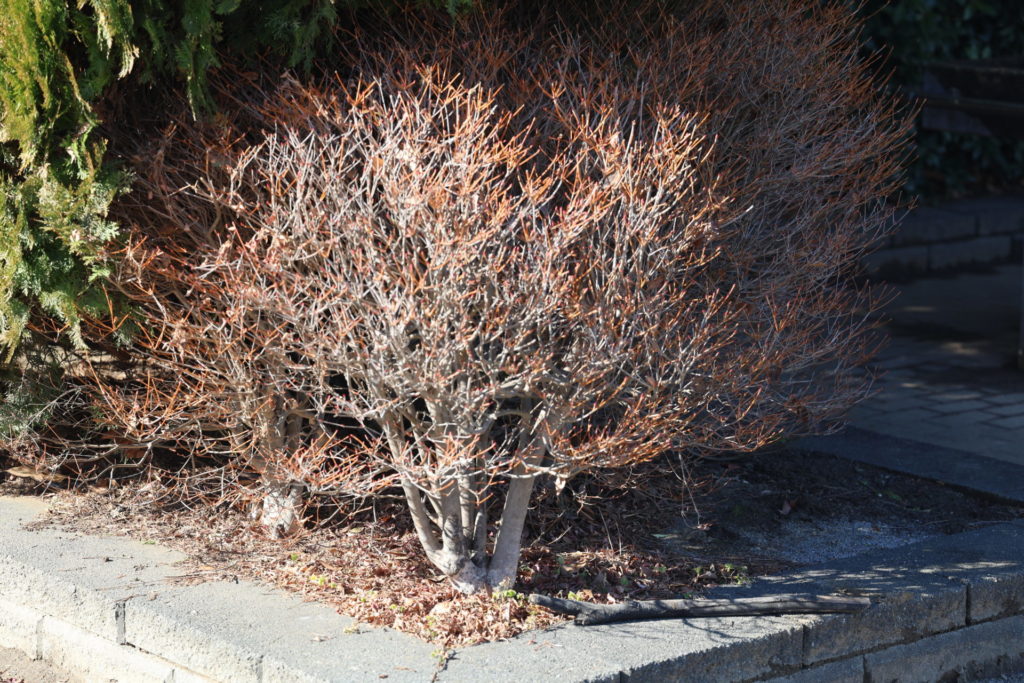植栽され剪定された株でも、幹の太さと上部の分枝の多さはわかる (‎2025年12‎月‎28‎日 所沢市)
