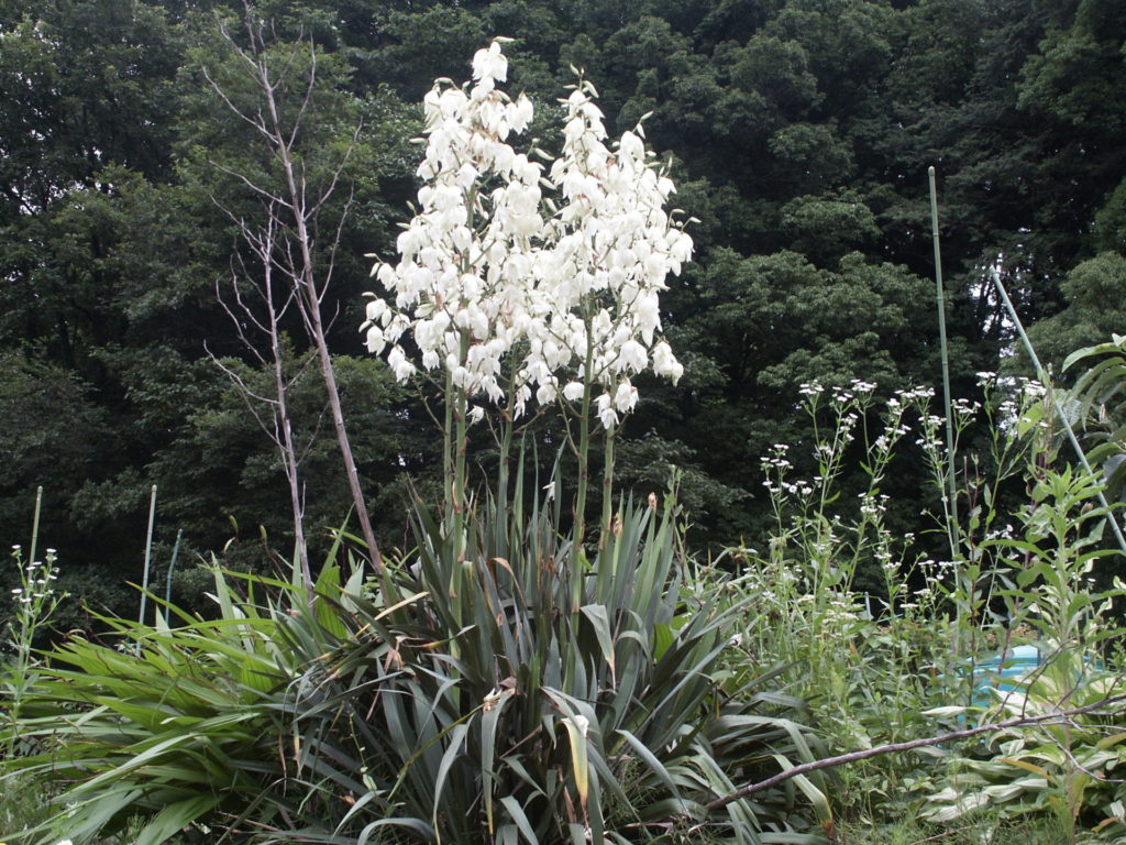 しかし、外来種であるがための苦労も多い。原産地では、繁殖は受粉を媒介するユッカ蛾がいるが、日本にはいないため結実は出来ない。園芸種として植栽するなら、挿し木や株分けをすれば良い。ところが、自然のままに放置しておくと、地下茎から栄養繁殖をしたり、倒れた茎が地面に触れると発根することもあるらしい。このため、異国に生きる環境のハンディキャップがあっても繁殖力は強く、環境省の生態系被害防止外来種リストの重点対策外来種に含まれる。また、日本で生育しているアツバキミガヨランは年に2回花が咲き、春から初夏には白い花、秋にはやや赤みがかった花がつく。このような行動は、四季のある異国の日本で身につけたものだろうか、それとも本来この植物が持ち合わせている遺伝子の業なのだろうか。何処の地でもたくましく生きていく術を持っているようだ。