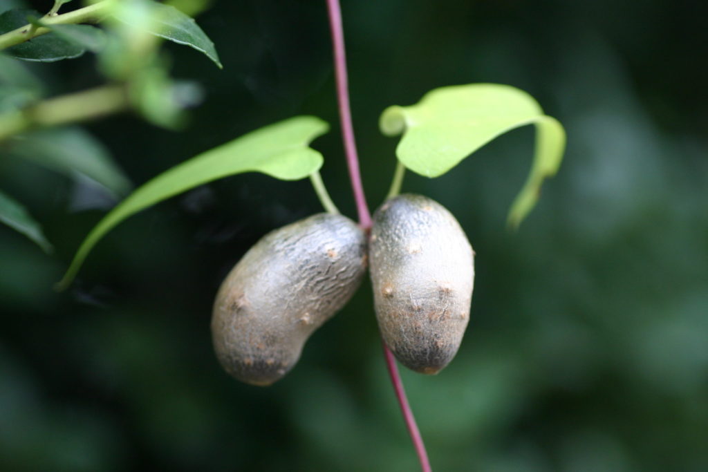 植物としてのヤマノイモは、生態が少し変わっている。雌雄異株で、それぞれ小さな雌花や雄花をつけるが花は殆ど開かず、昆虫ではなく風によって花粉が運ばれ、種子繁殖が出来るとの説がある。また、葉の腋から球状の小さなムカゴ(零余子、珠芽)ができ、これによる栄養繁殖も可能だ。秋になると落葉し、果実の殻だけが塊となって巻き付かれた樹木の枝にぶら下がる。その一方で地下には、1mを超えるような所謂トロロイモ(自然薯)が隠れている。従って、ヤマノイモのイメージはこれと言って固定したものがなく、季節によって千変万化だ。また、日本の在来種でもあるので、縄文人の食を支えたり、平安貴族には甘味料を加えて"芋がゆ"として好まれたり、江戸時代には東海道鞠子宿の名物"とろろ汁"や、和菓子の材料となり、現代日本では粘り気の大きい自然薯は、水分の多い長芋より、野性味がある高級食材として認識されている。