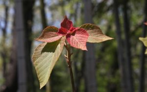 アカメガシワ - 際立つ鮮紅色の芽吹き